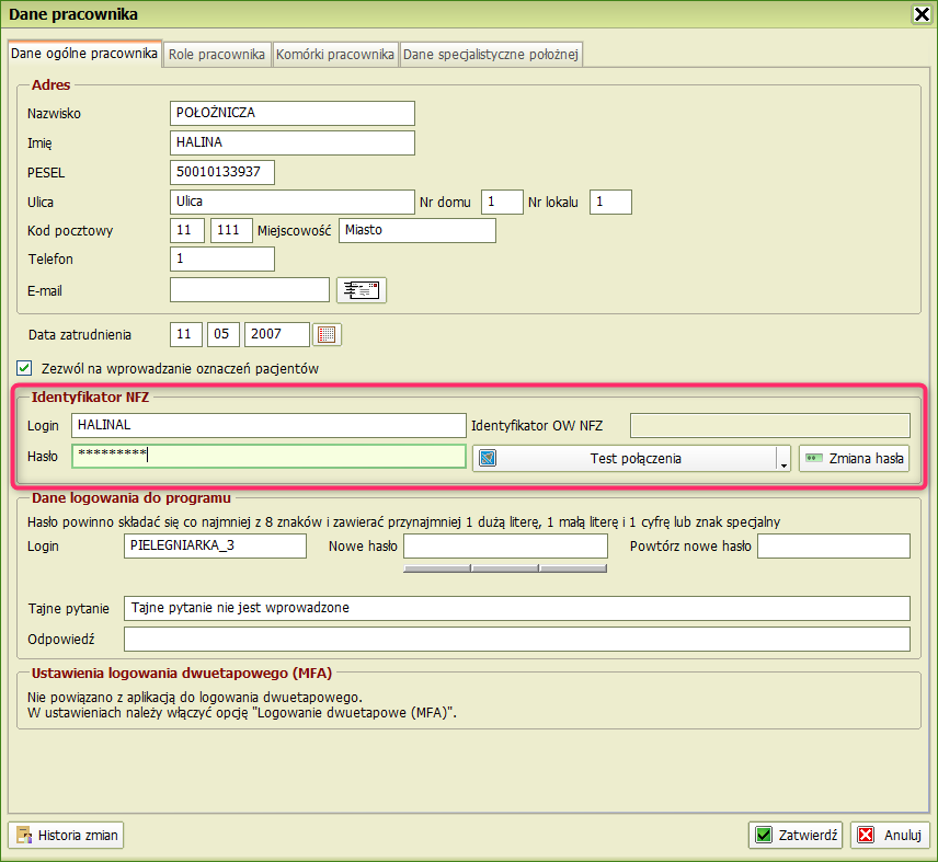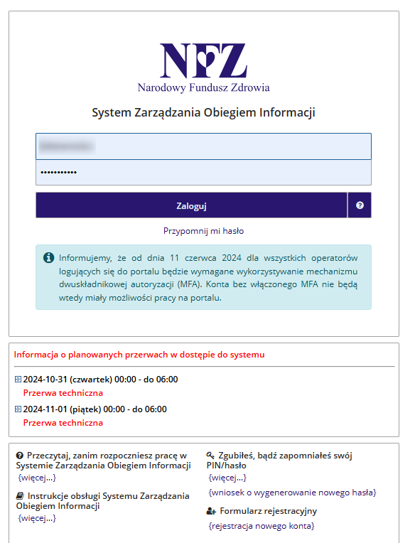 Według nowych wytycznych NFZ, długość hasła minimum 14 znaków (było 8);